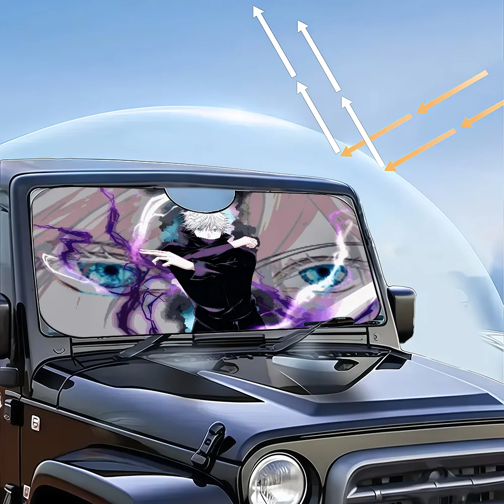 Cool Jujutsu Kaisen Gojo Satoru Car Sunshade – Solar Protection Windshield Cover