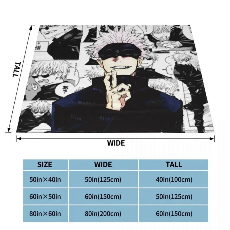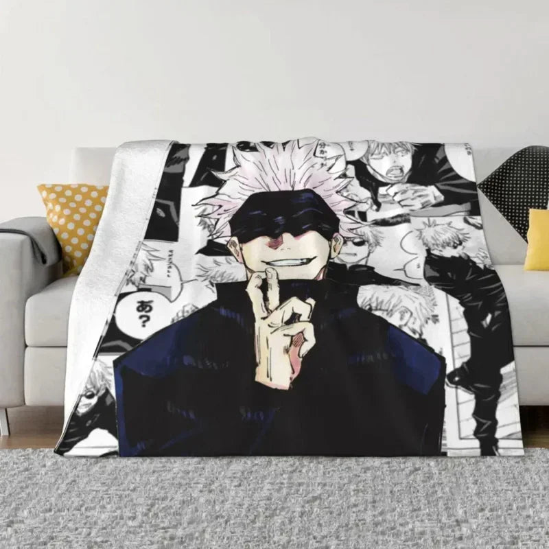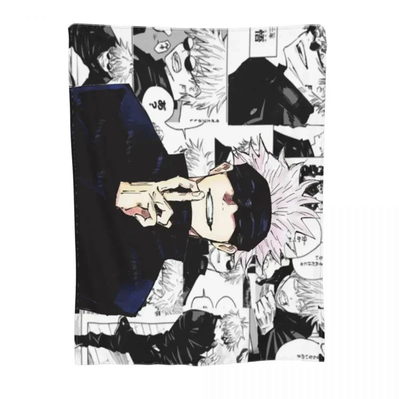 Wrap yourself in the world of Jujutsu Kaisen with these Gojo Satoru collage manga fleece blankets. A perfect vintage throw for anime enthusiasts and Hello Kitty fans alike!