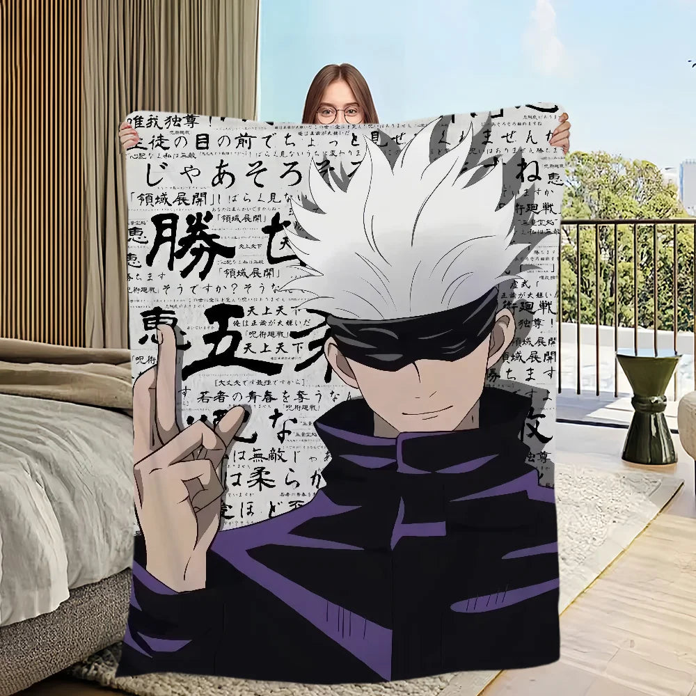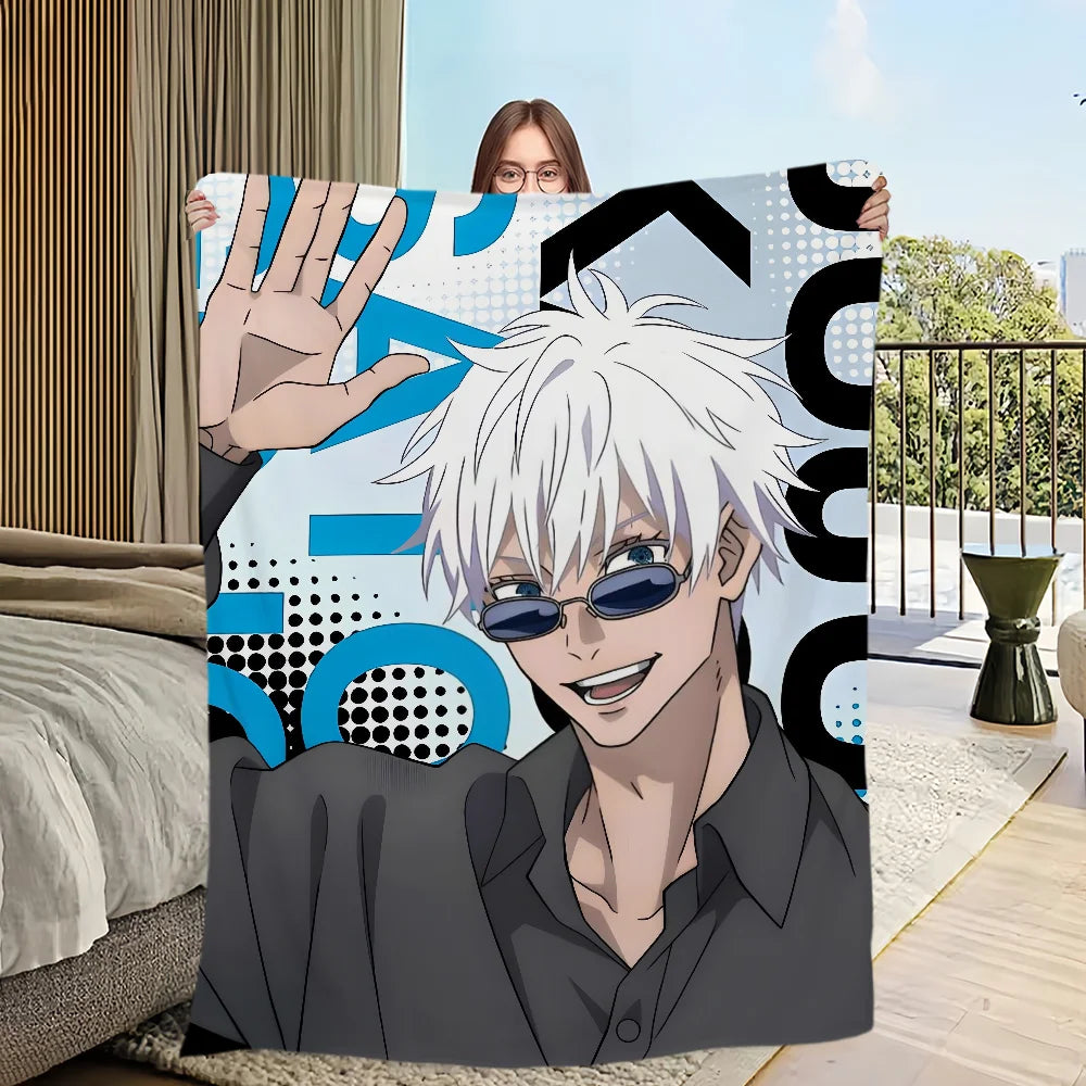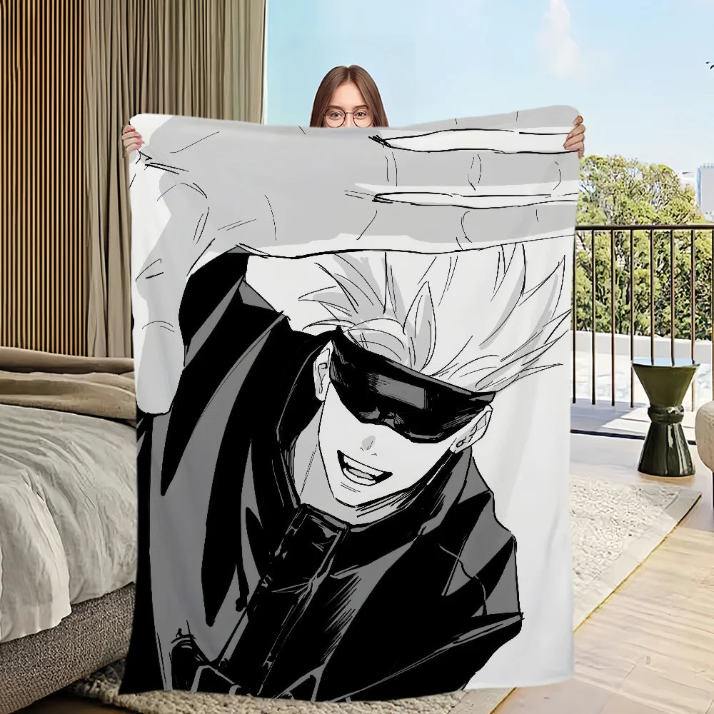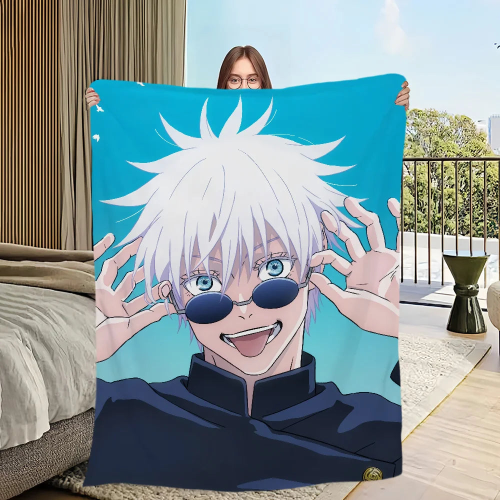 Wrap yourself in the comfort and warmth of this plush blanket featuring anime favorites Gojo Satoru — a perfect addition for any fan's living room, office, or bedroom!