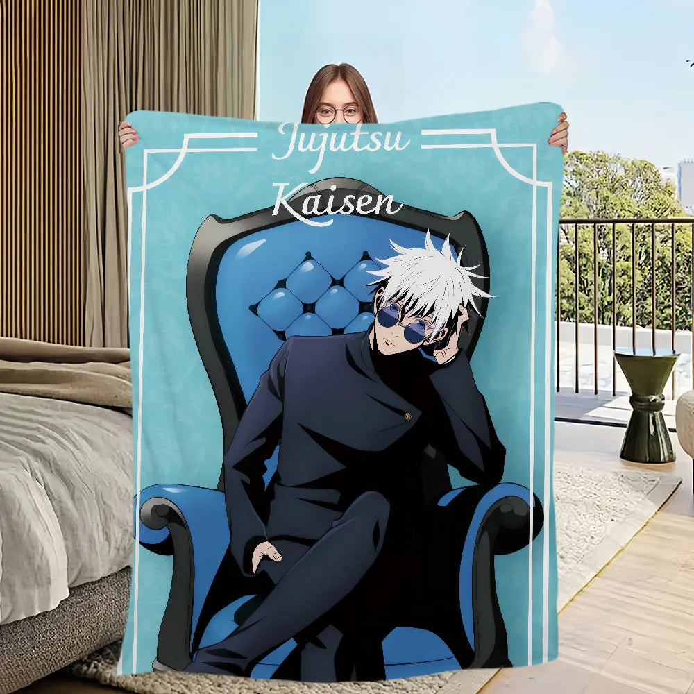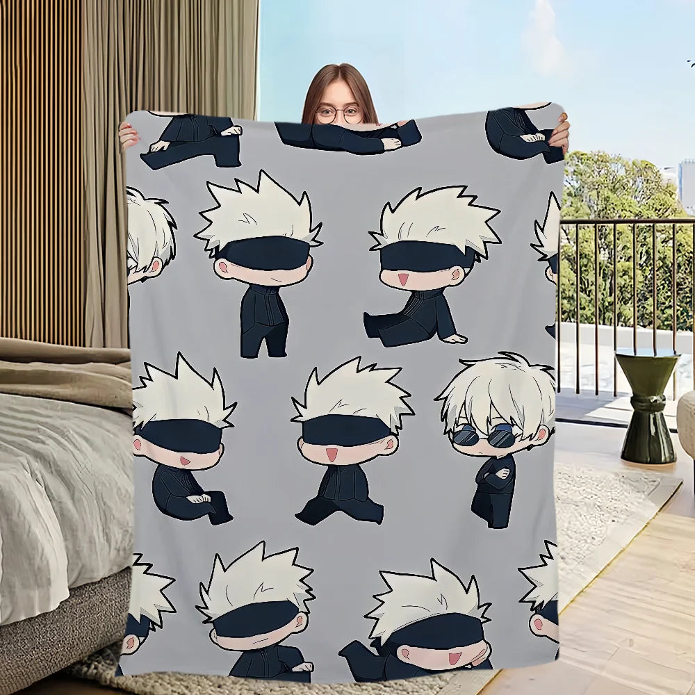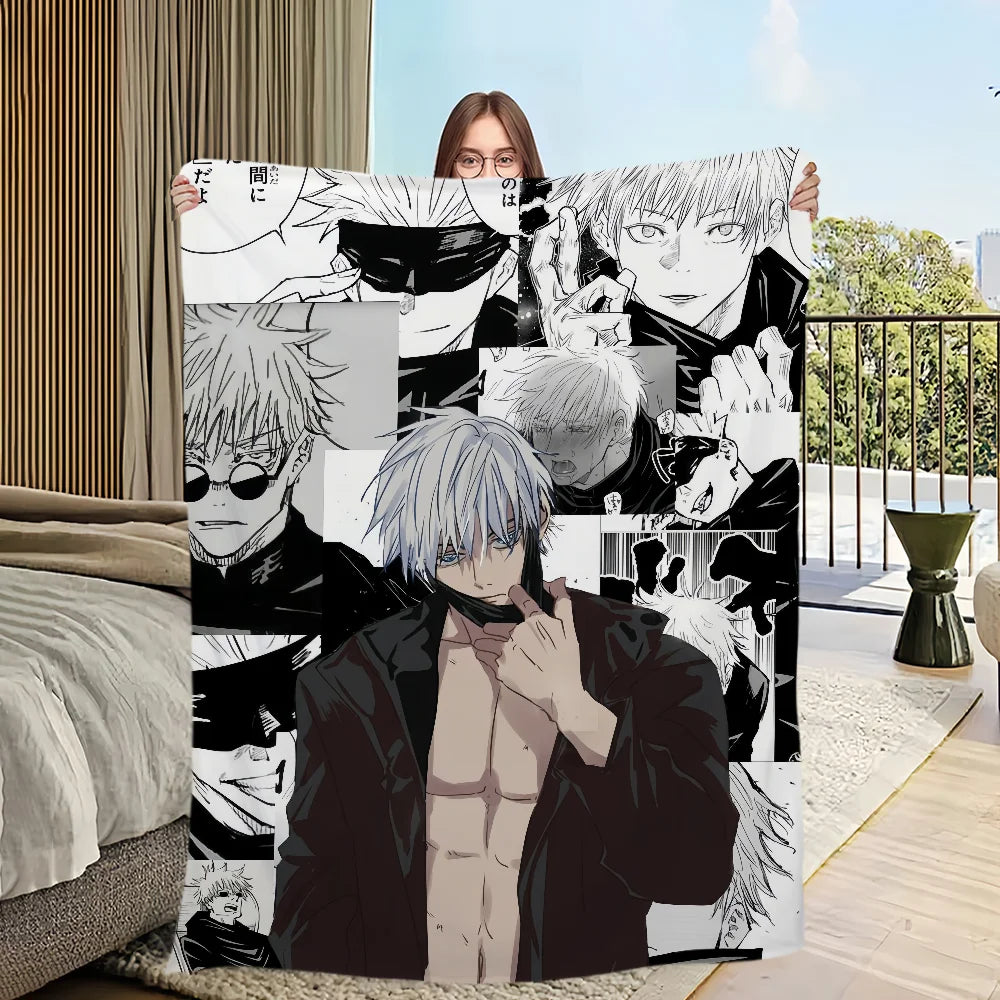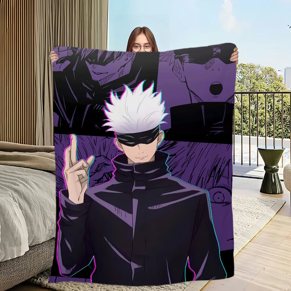 Wrap yourself in the comfort and warmth of this plush blanket featuring anime favorites Gojo Satoru — a perfect addition for any fan's living room, office, or bedroom!