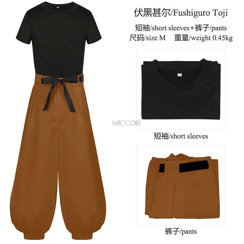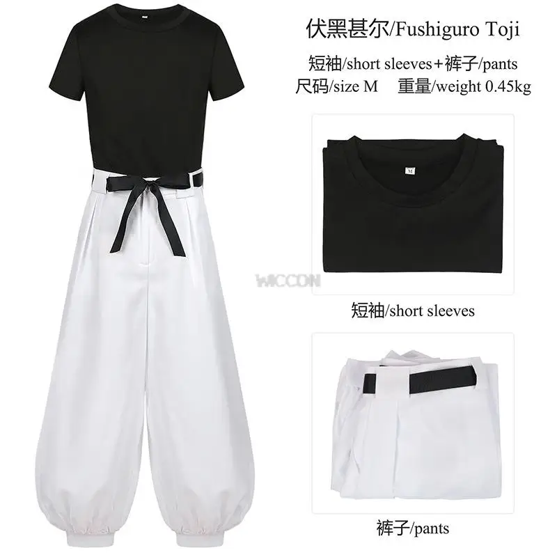 Includes Toji Fushiguro's signature black top and pants, faithfully recreated from the anime